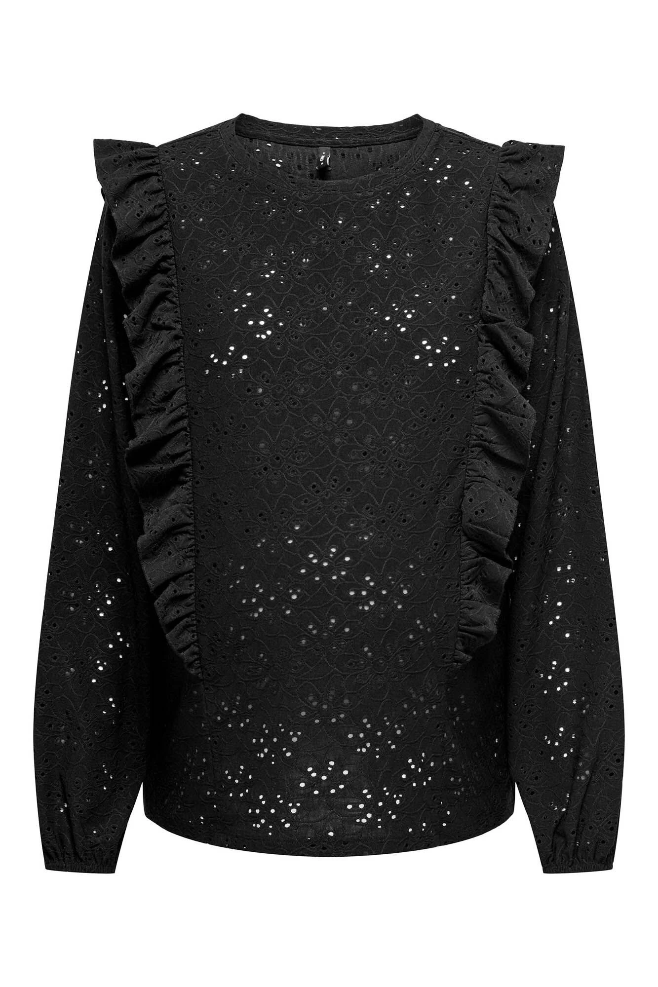 Blusa cuello redondo, mangas largas y detalles de volantes para un toque femenino. Es perfecto para futuras mamás y tiene un ajuste regular que realza tu figura … .