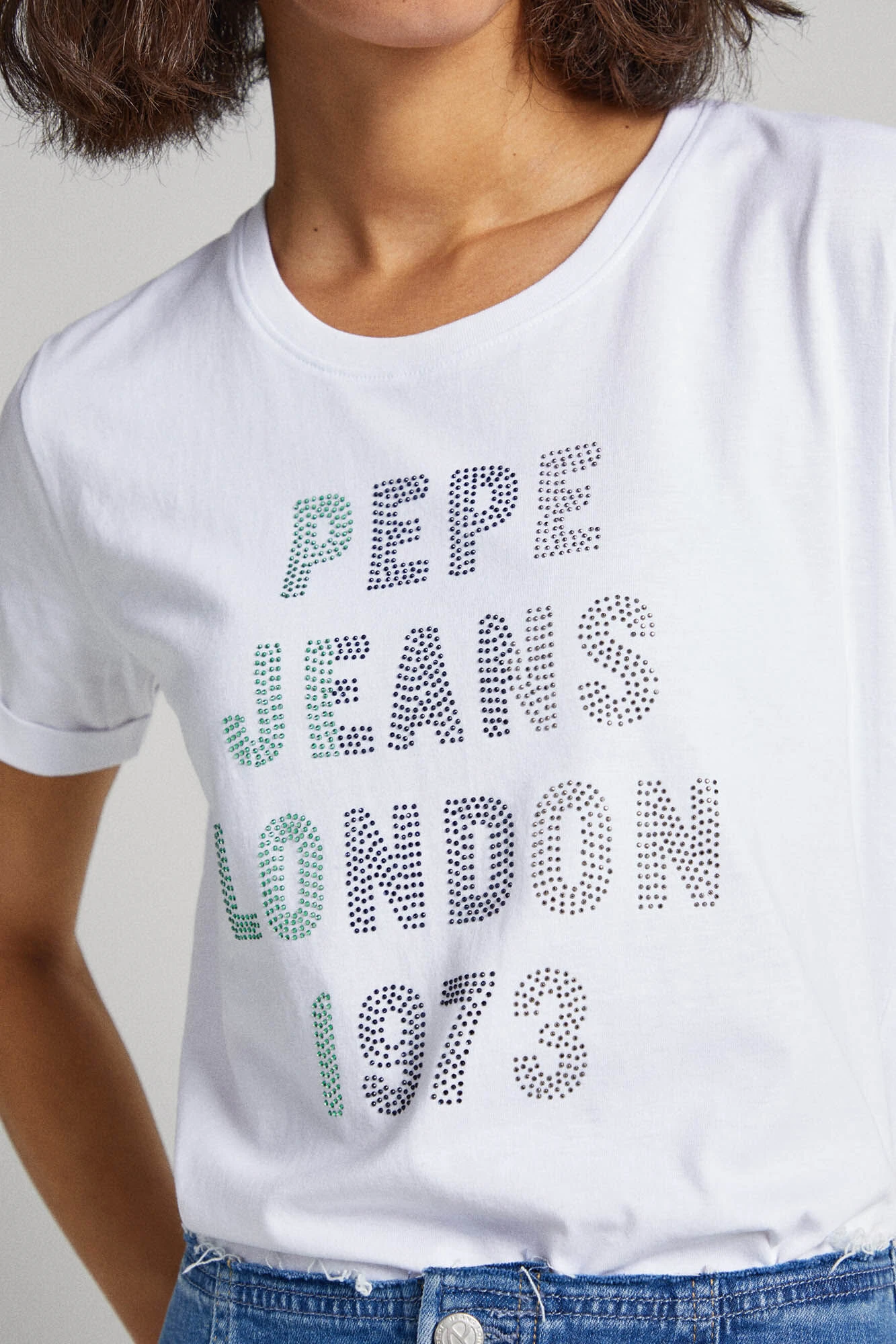 Camiseta slim fit de manga corta con gráfico de rinhestones en la parte delantera.
