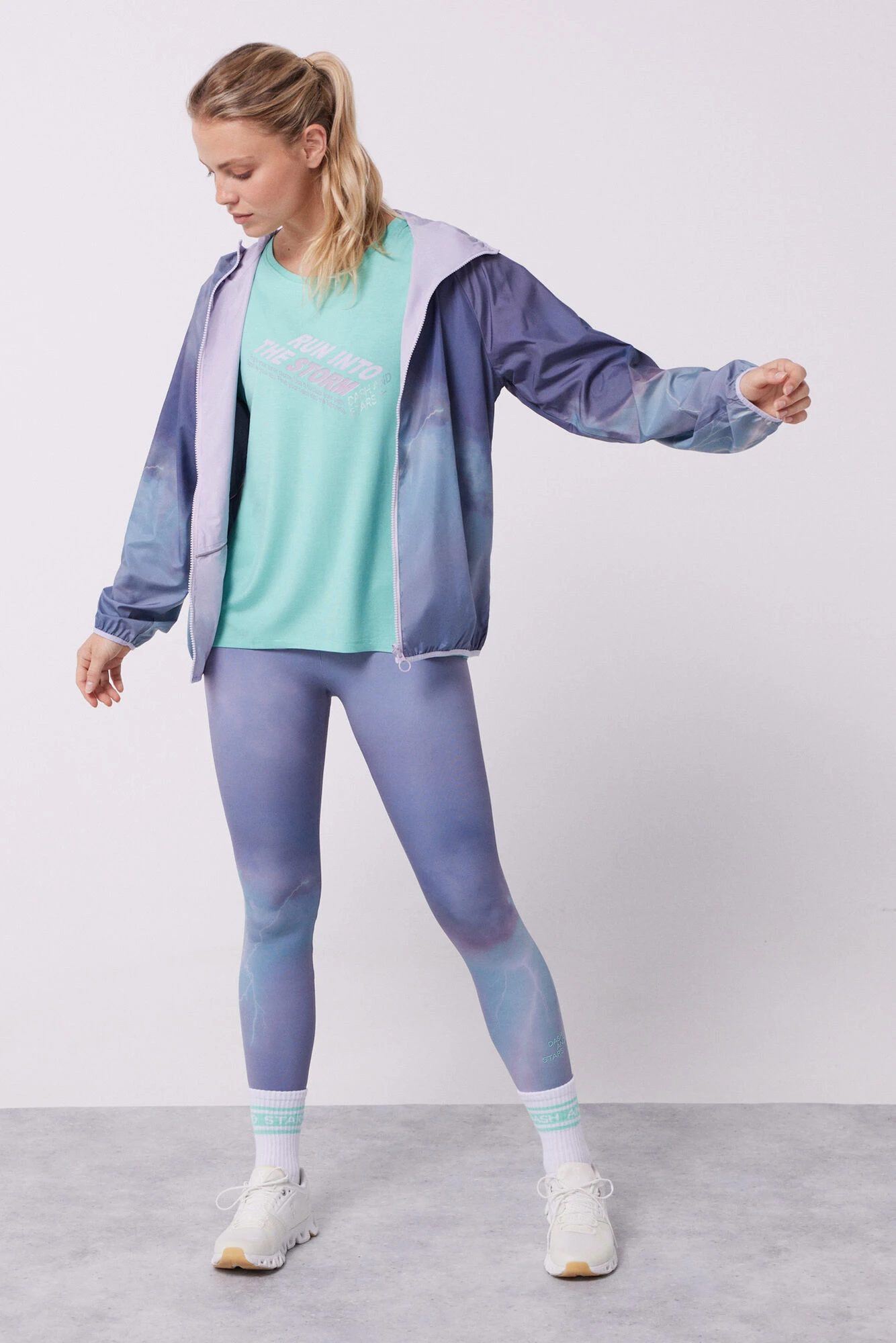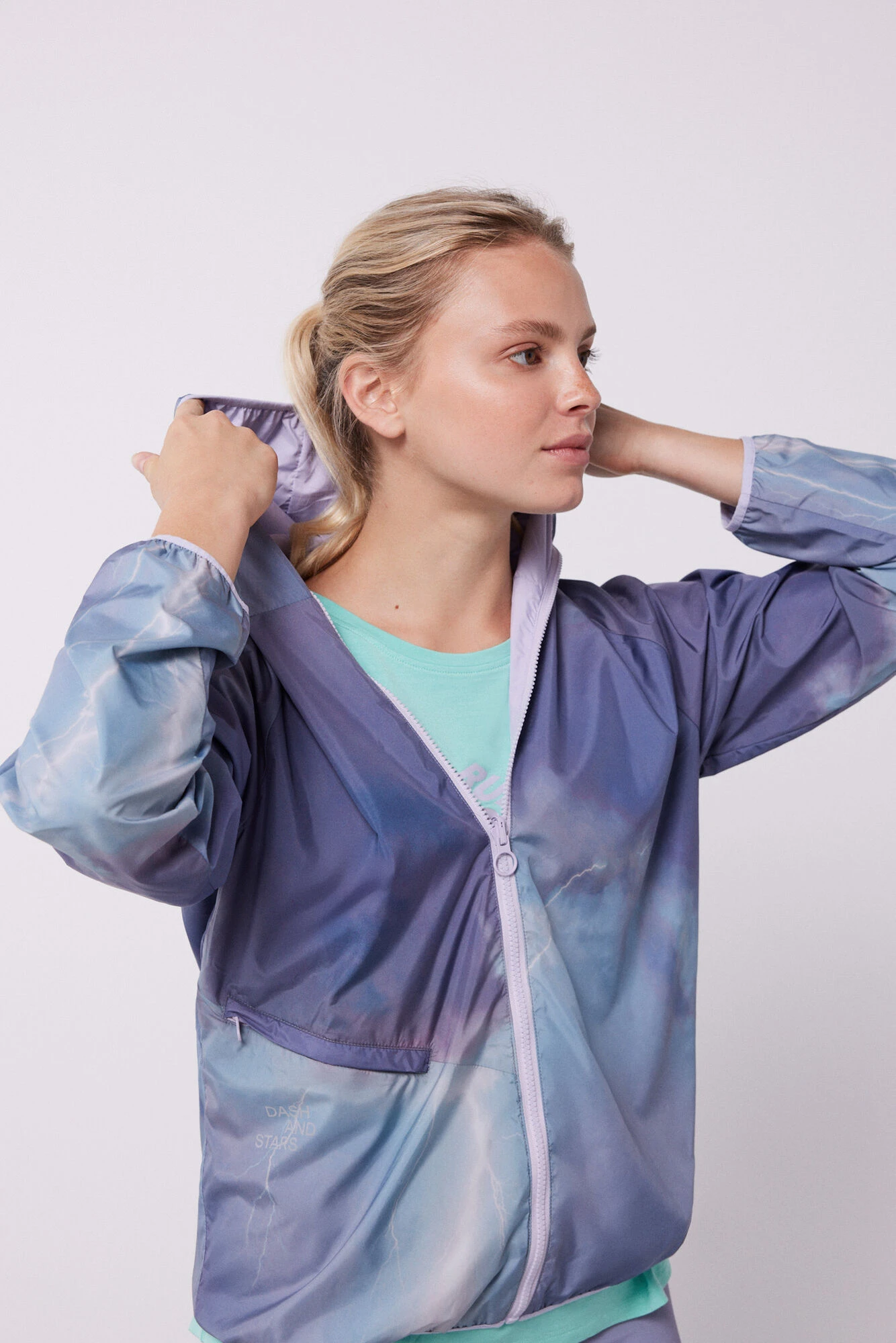 – Chaqueta reversible e impermeable con capucha de tejido técnico ultraligero. Con cremallera en el frontal y en el bolsillo, podrás lucir esta chaqueta de … dos formas distintas: por su lado más liso en un bonito color lila, o por su lado estampado con temática de tormenta. Además, tiene detalles reflectantes en zonas estratégicas. ¿Lo mejor de todo? Podrás llevarla y guardarla muy fácilmente gracias a que es de tipo ‘packable’.