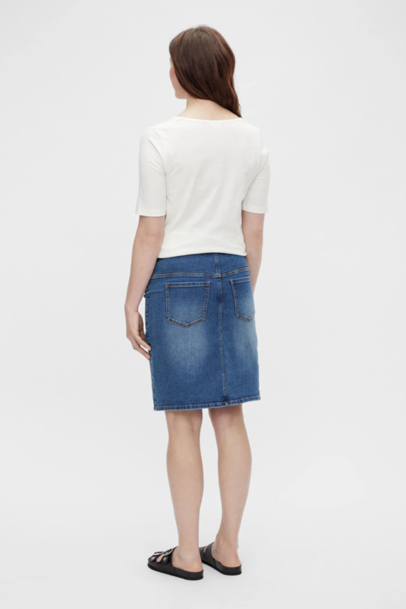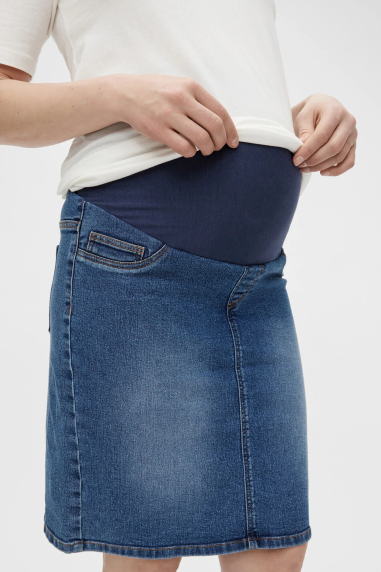 Falda vaquera con banda elástica para ajuste optimo sobre la barriga.