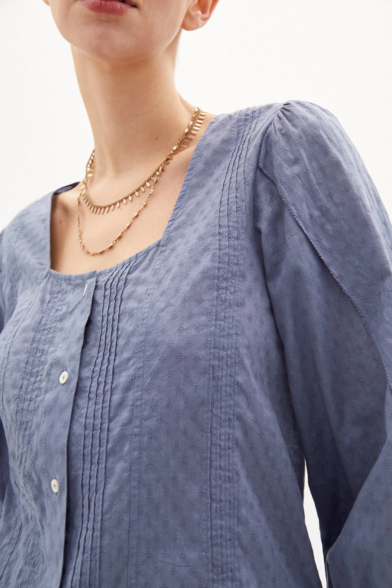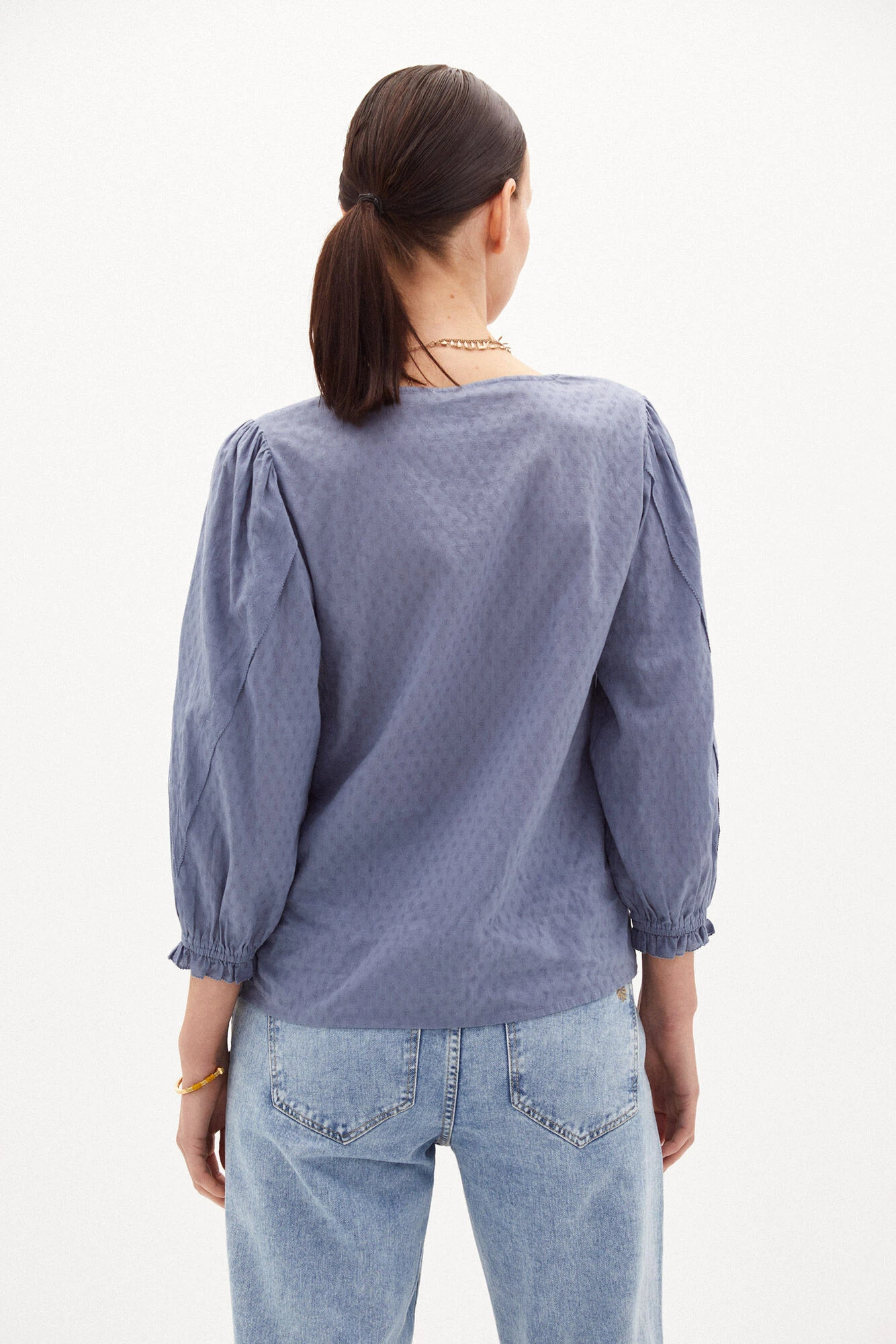 La blusa MACARENA de Hoss Intropia juega la carta de la femenidad. Se distingue por su juego de pequeños pliegues en la tapeta, que le confieren un aspecto lige … ramente vintage. Está confeccionada en algodón, recorrida por unos botones de nácar en la parte delantera. Llaman también la atención sus frunces en los hombros creando un bonito volumen en sus mangas 3/4. Una blusa que podrás llevar con una chaqueta de punto. Al elegir nuestros productos de algodón estás apoyando nuestra inversión en la iniciativa Better Cotton. Este producto se ha obtenido mediante un sistema de balance de masas y, por tanto, puede no contener Better Cotton.