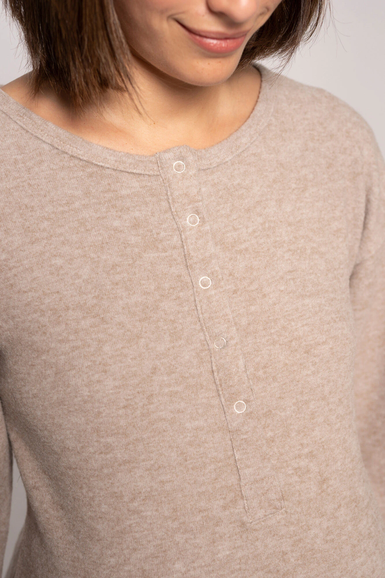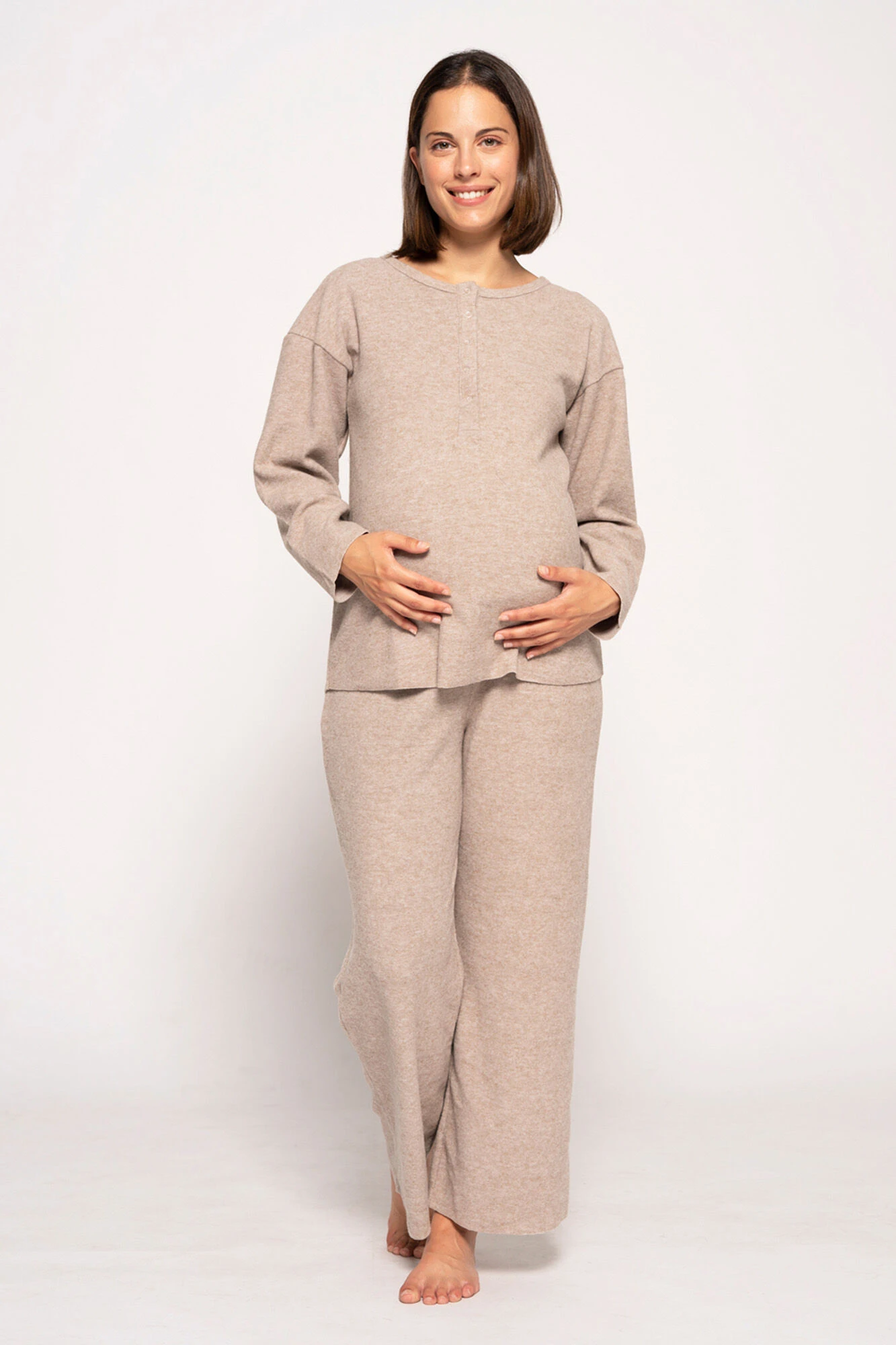 Ultra suave y cómoda, camiseta de lactancia premamá en color piedra. Confeccionada en un tejido suave y elástico. Combínala con el Pantalon ancho premama comfy.