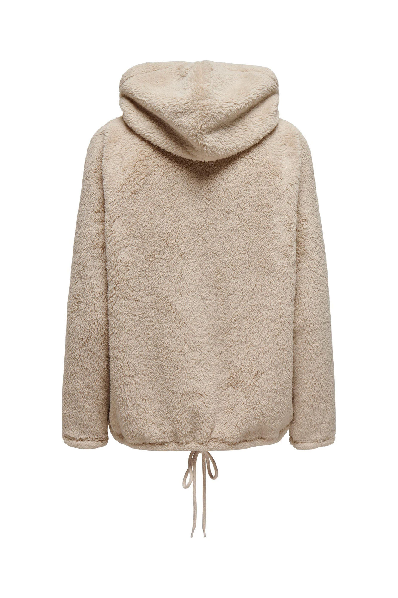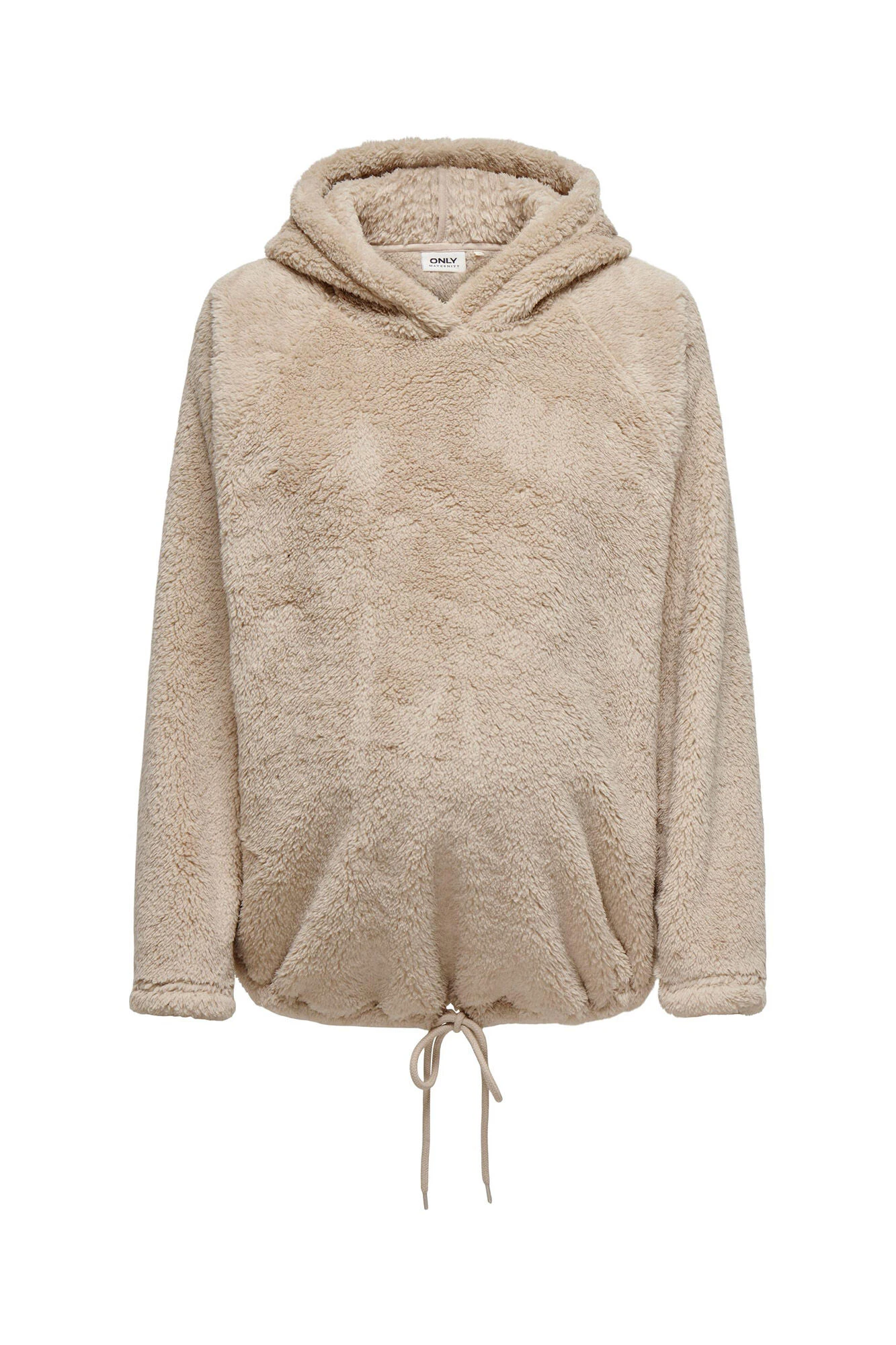 Sudade peluche de maternidad con capucha, mangas largas y un ajuste regular que permite espacio para el crecimiento del vientre. Destaca por su detalle de cordĂł … n ajustable. Una prenda cĂłmoda y elegante para futuras mamás.
