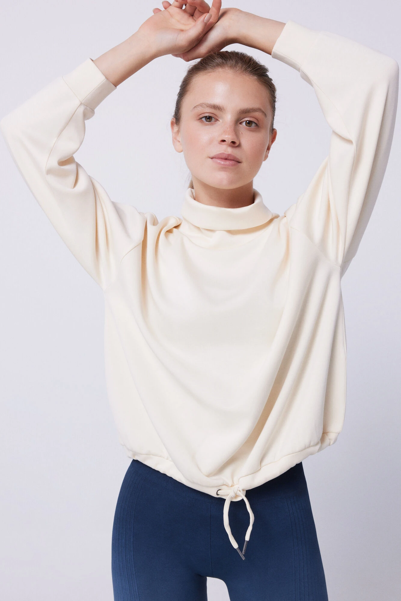 – Sudadera con tejido de tacto suave, súper agradable, en un clásico color blanco. Con cuello chimenea, puños y detalle de cordón en el bajo para un mejor a … juste. ¡Es tendencia!