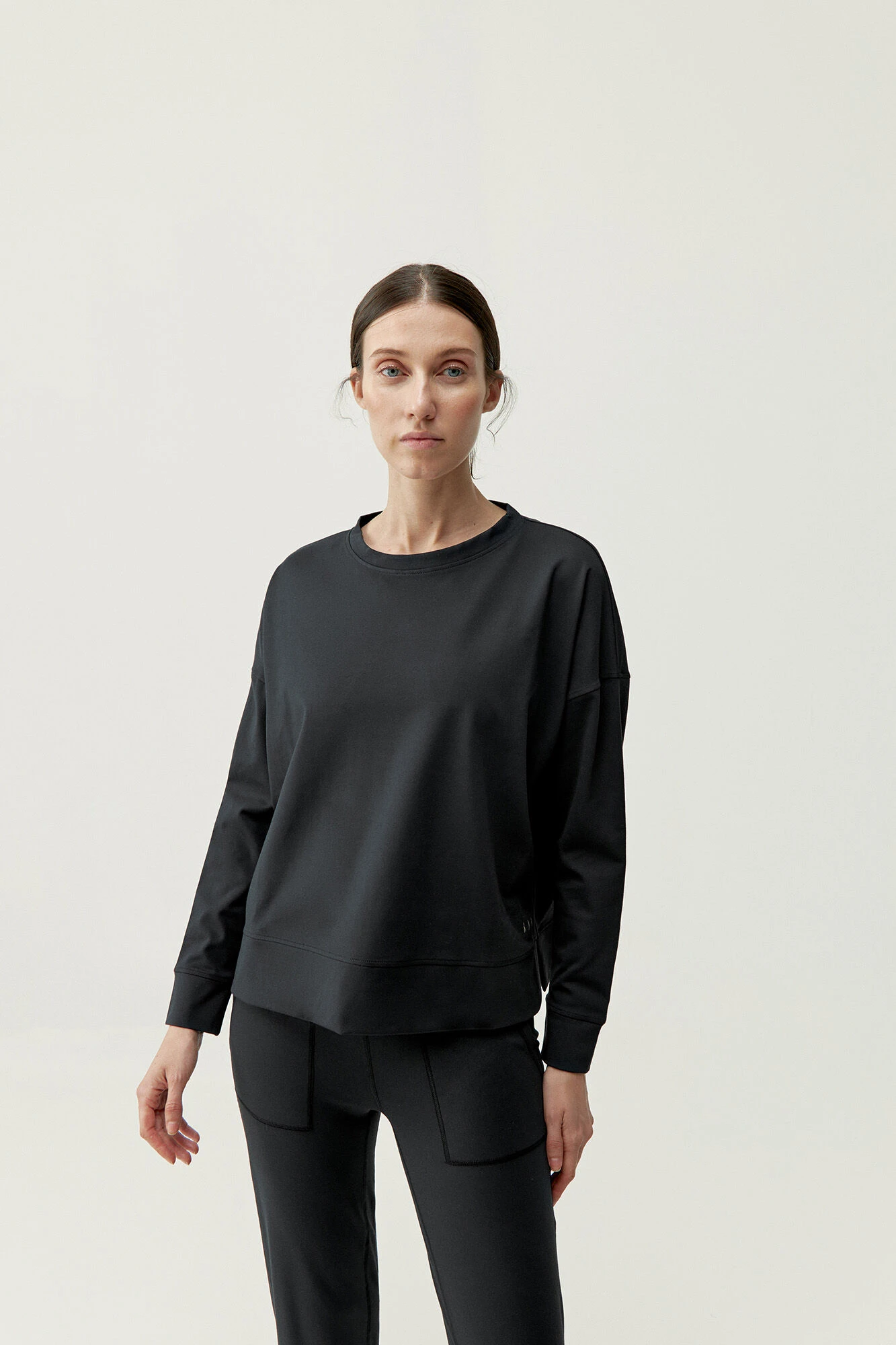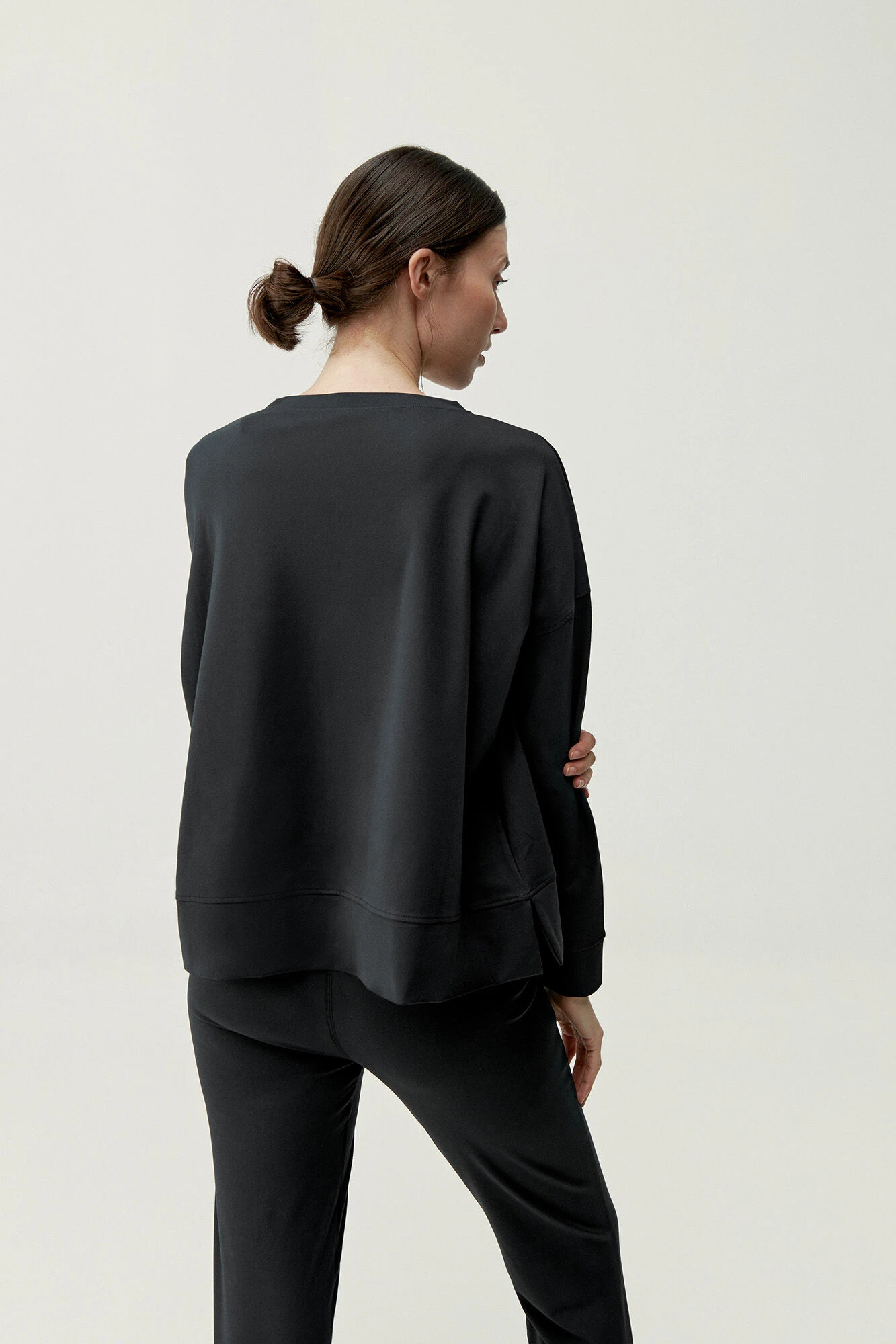 Sudadera deportiva de patrón holgado y aberturas laterales. Tejido Tejido “Peach_T”. Muy versátil.