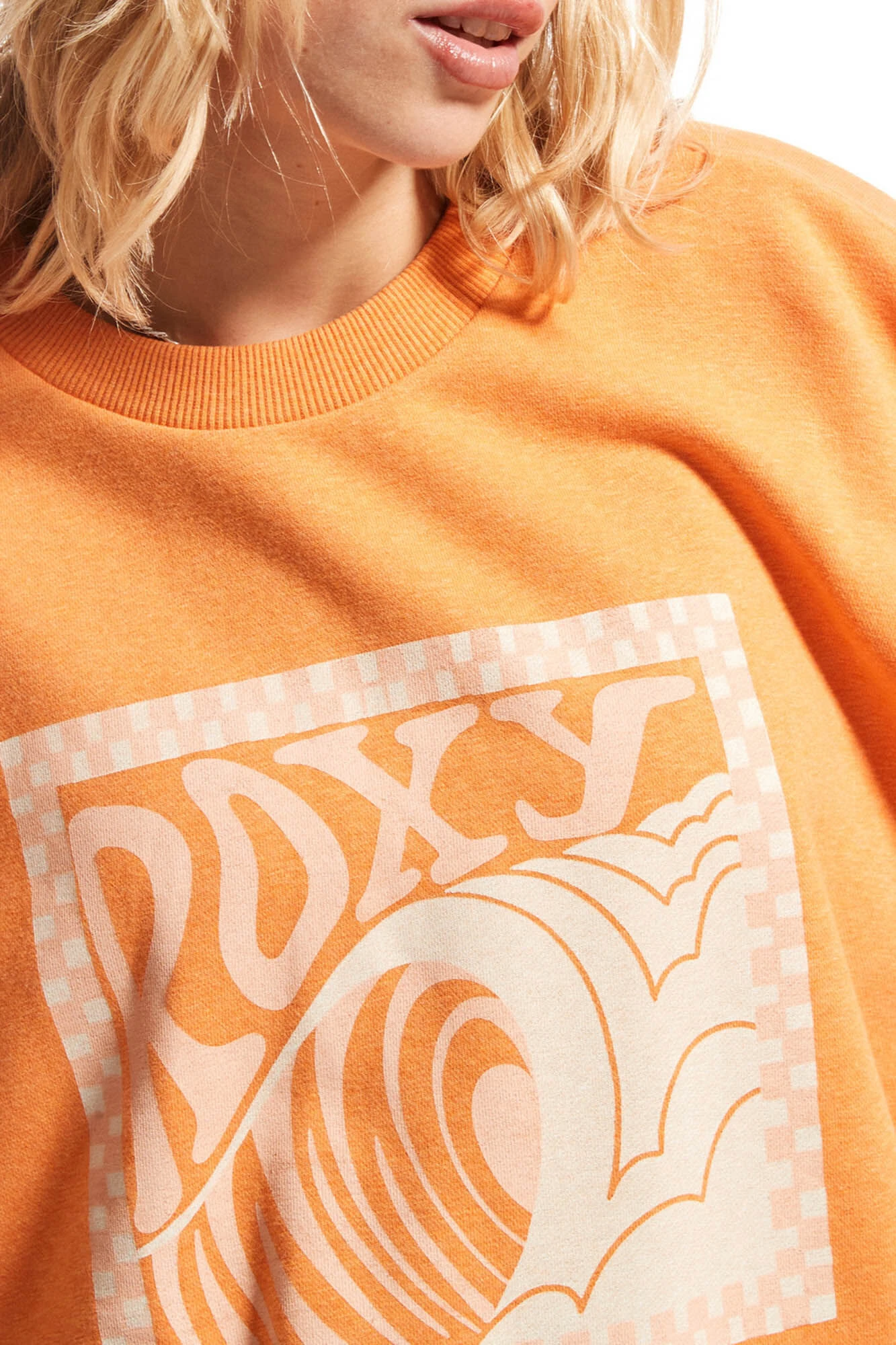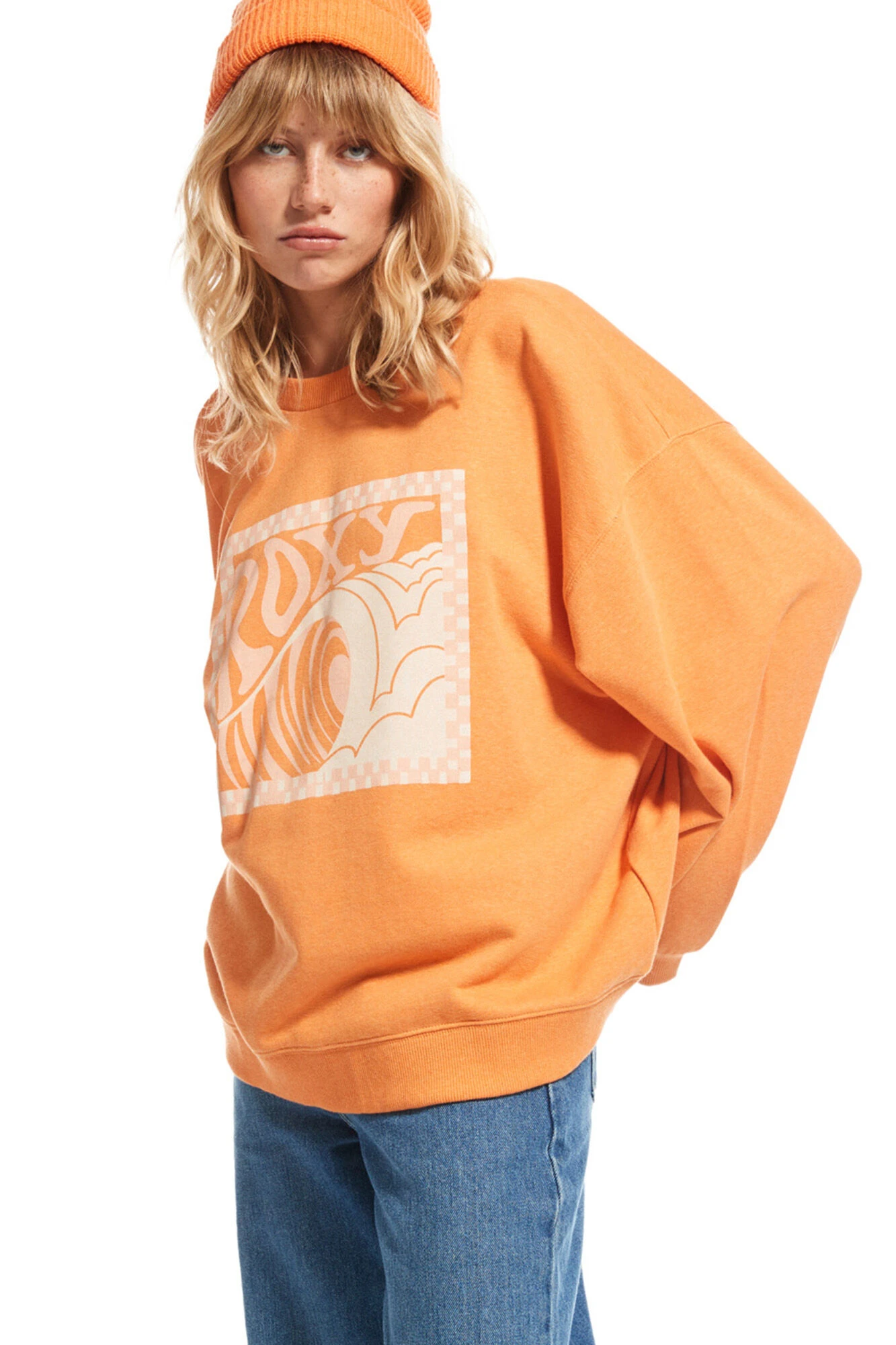Sudadera para Mujer. Características incluyen: terry jaspeado, mezcla de algodón y poliéster [280 g/m2], corte extra grande, Cuello redondo, Mangas: Manga larga … y Otras características: serigrafía en la parte delantera.
