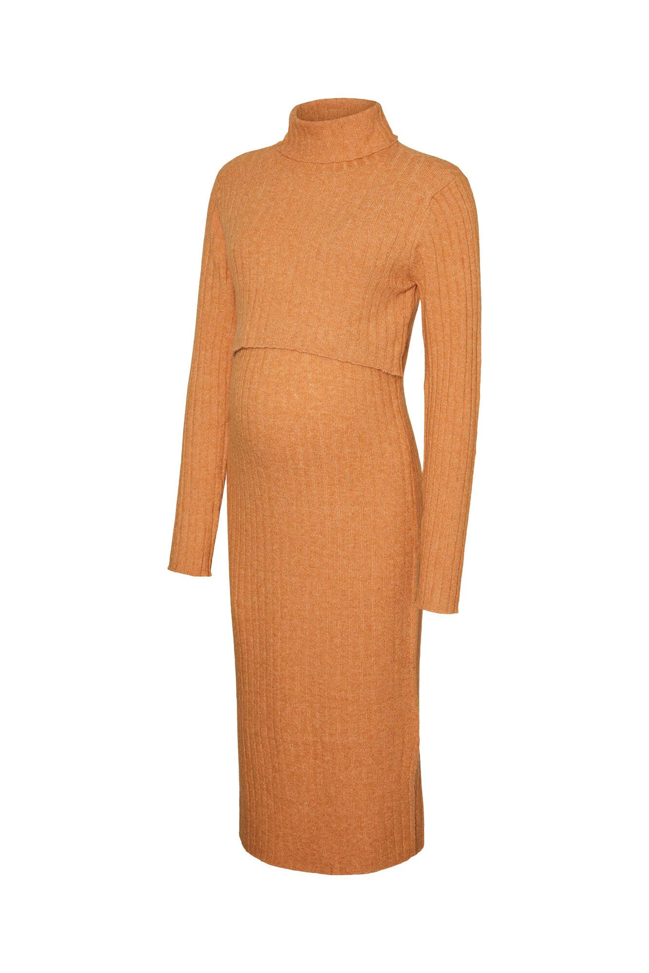 Vestido midi de punto, con manga larga y cuello vuelto. Detalle de apertura para lactancia. Tejido ultra elástico con estructura de canalé