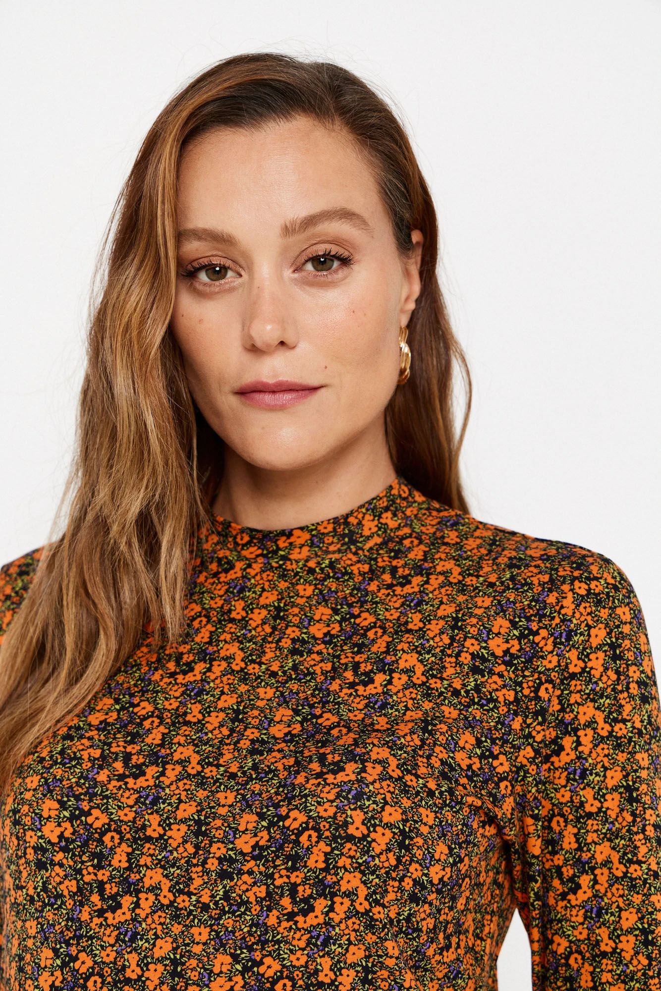 Vestido midi ajustado de manga larga y cuello redondo