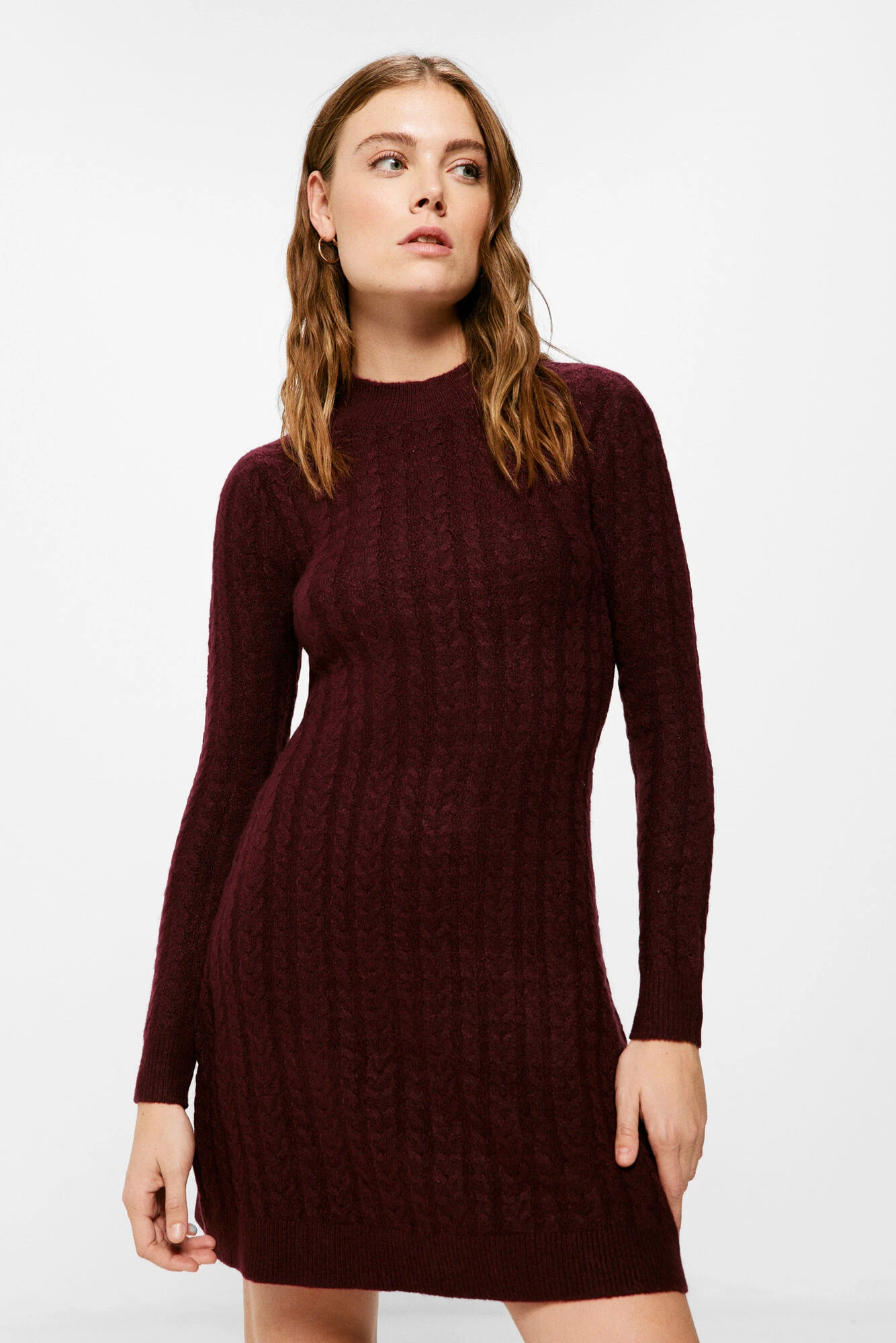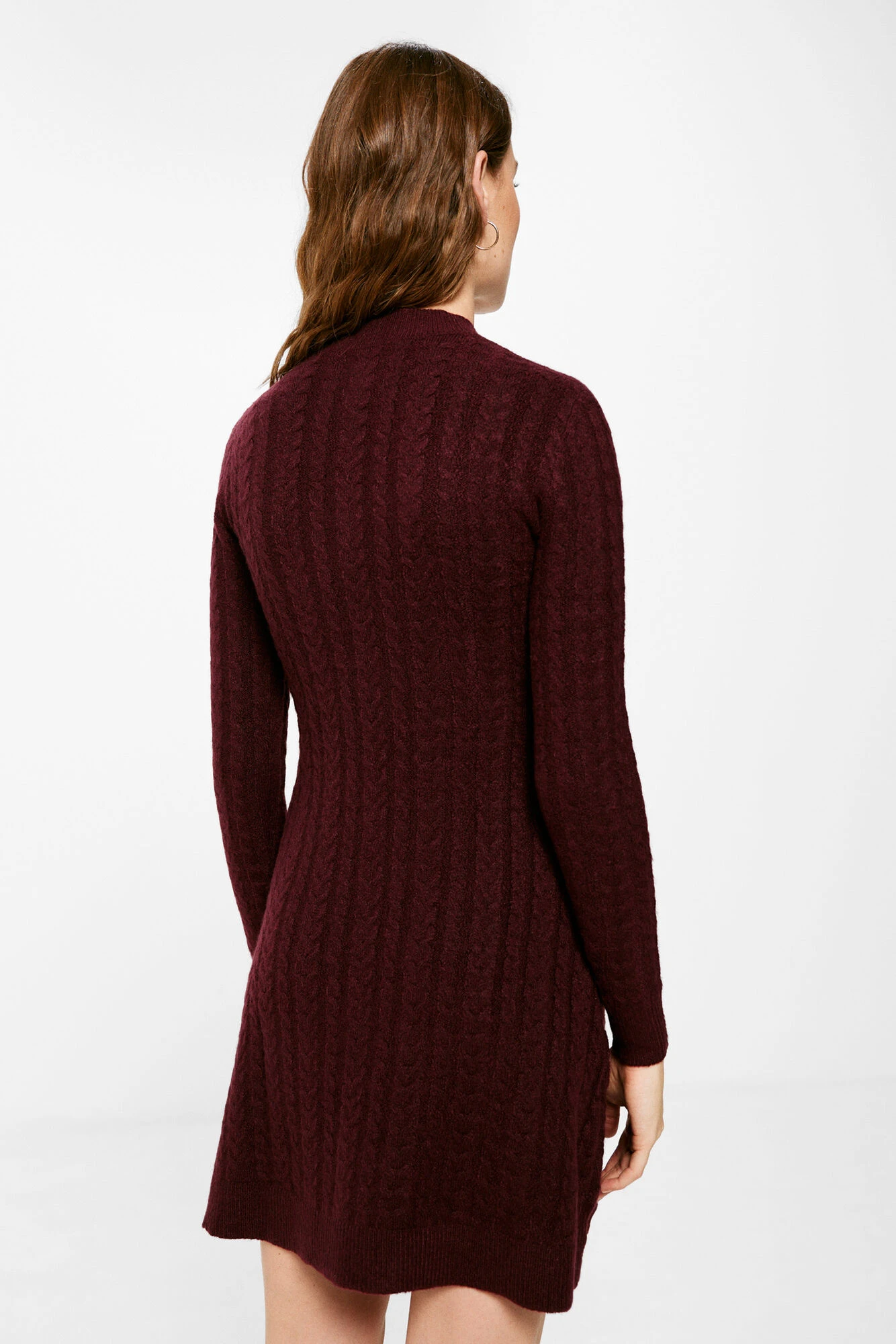 Vestido corto de manga larga, con cuello estilo perkins, con falda skater y con punto cable knit.