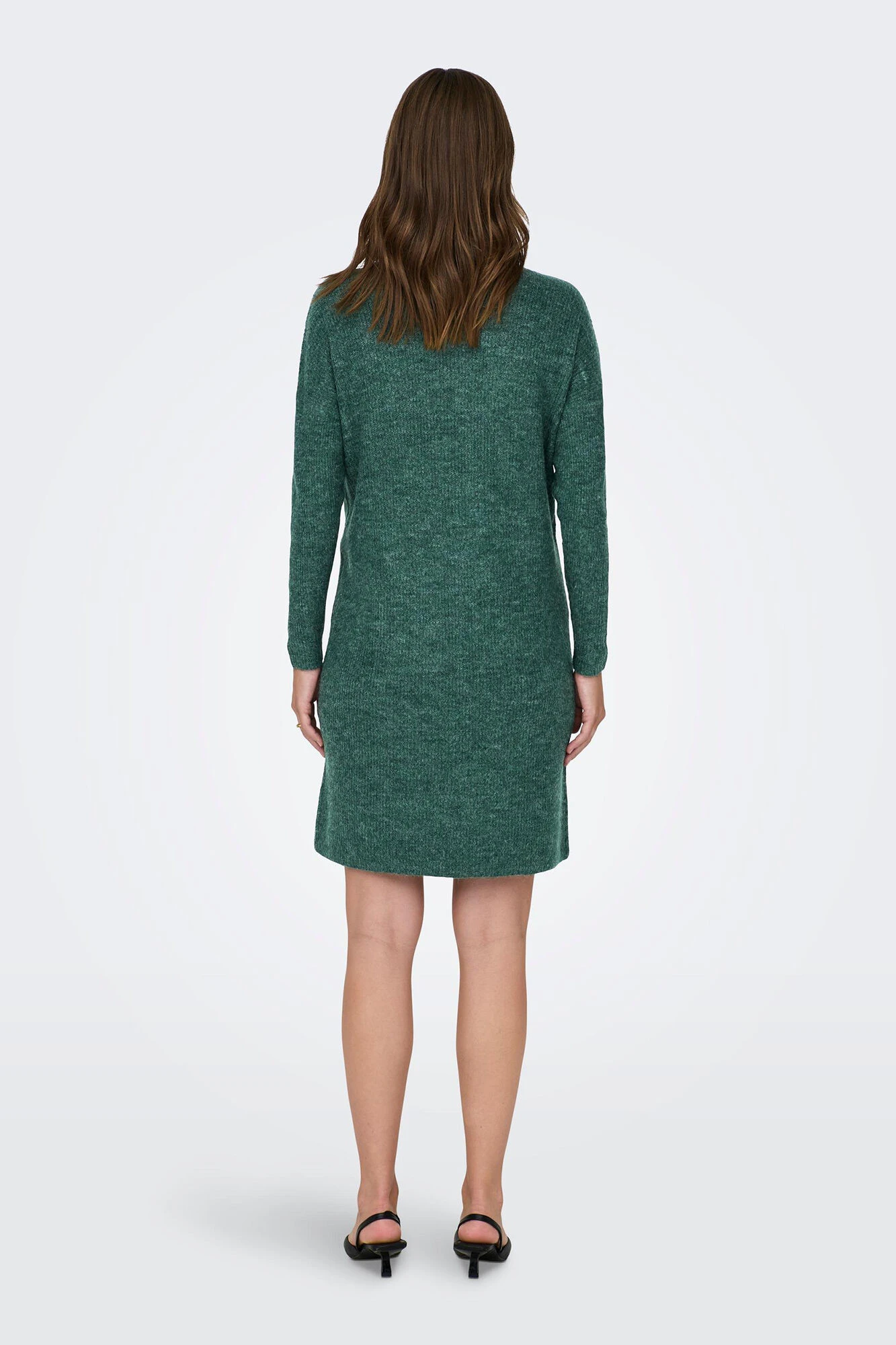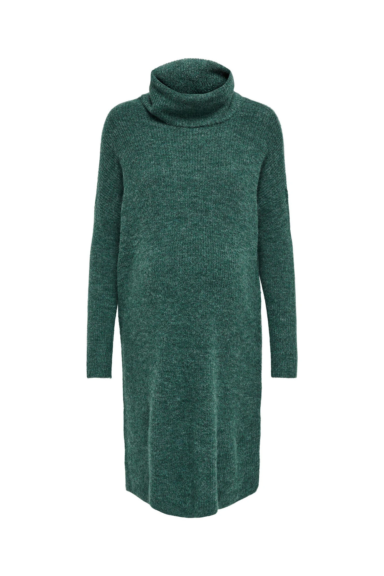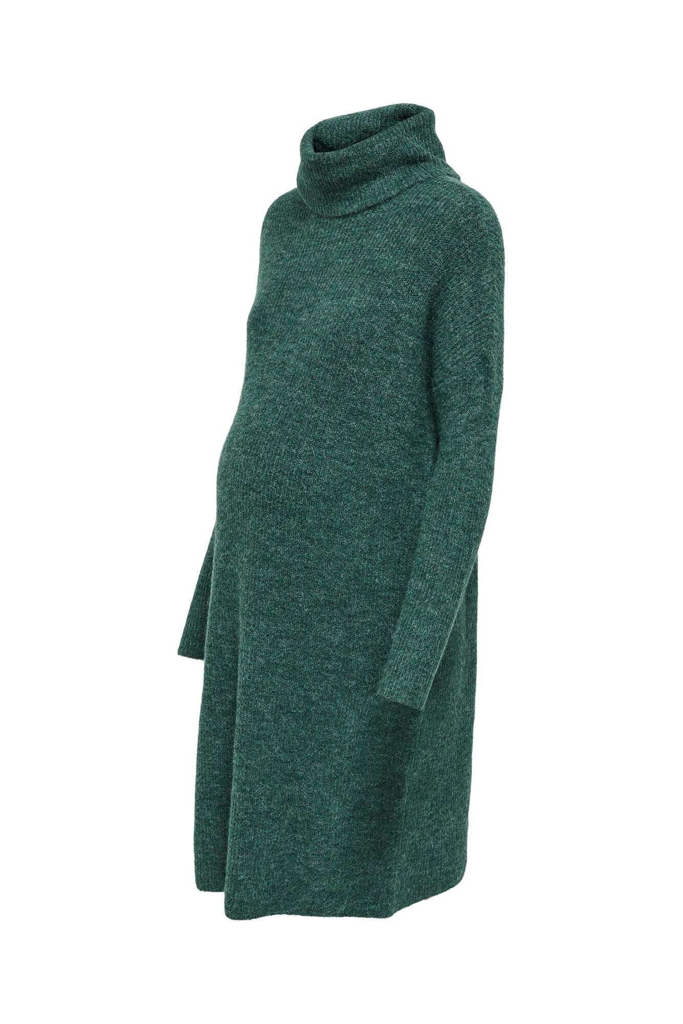 Vestido de punto de maternidad con cuello vuelto, mangas largas y ajuste holgado para comodidad durante el embarazo. Elegante y cómodo.